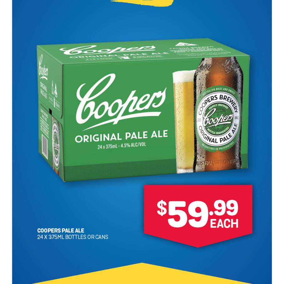 Coopers Pale Ale (24pk btls or cans)